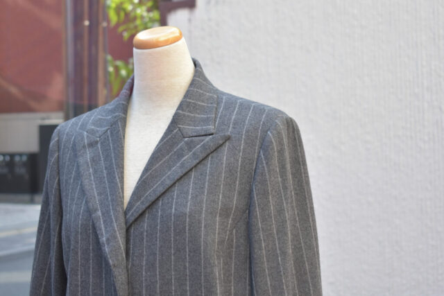 当店ではレディースもオーダーコートをお仕立ていただけます。定番の黒、紺、グレー、キャメルの無地はもちろんの事、あまり見かけない大柄のチェックやストライプなど自分だけの特別なコートは冬のお出かけが楽しみになる1着となります。